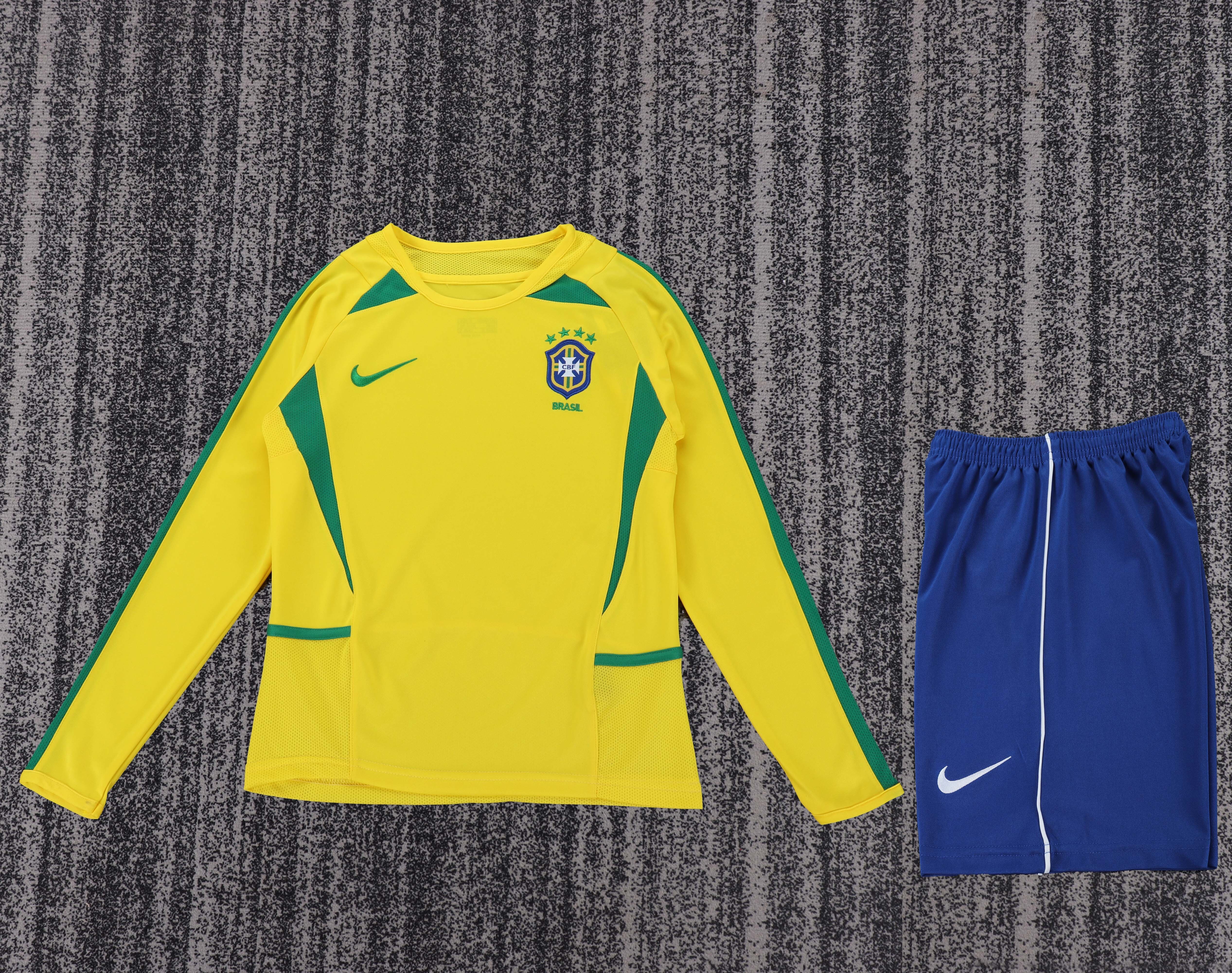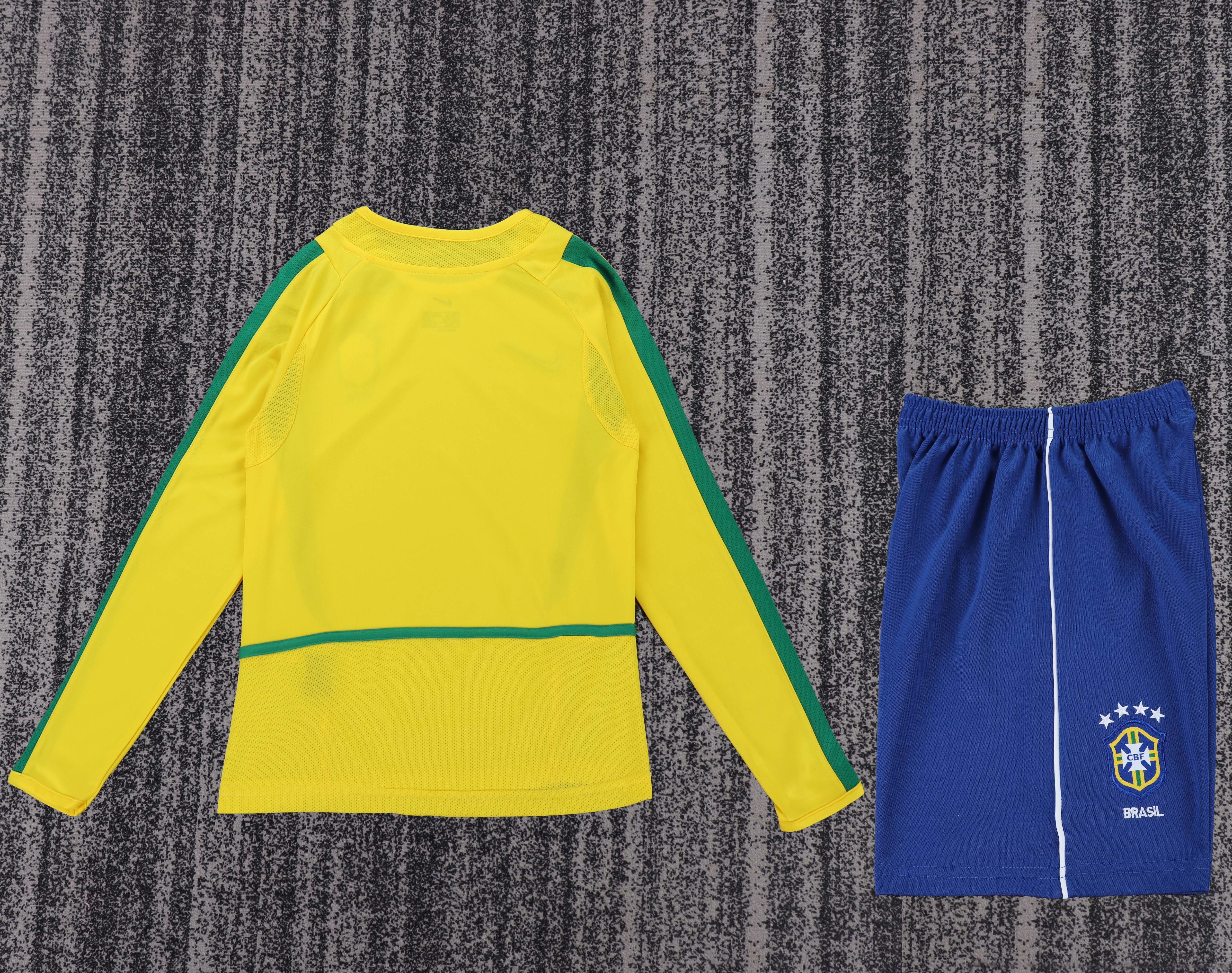 2002 World Cup Brazil Home Retro Kids Jersey Long Sleeve